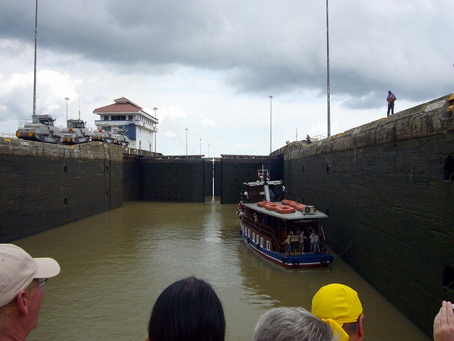 閘門を通過するところだが、この時激しいスコールにより撮影中止。船内で昼食とする。